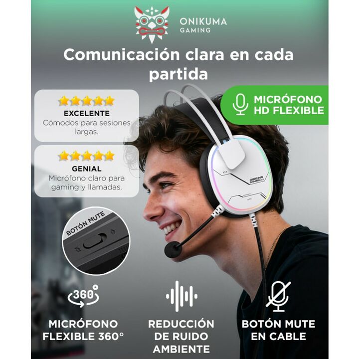 Acerca de Auricular Gamer Onikuma X91 Micrófono Flexible HD Luz RGB Comunicación precisa con micrófono HD flexible: El Auricular Gamer Onikuma X91 incorpora micrófono de alta definición con brazo flexible 360°, diseñado para captar la voz con claridad y reducir ruidos no deseados durante partidas on...
