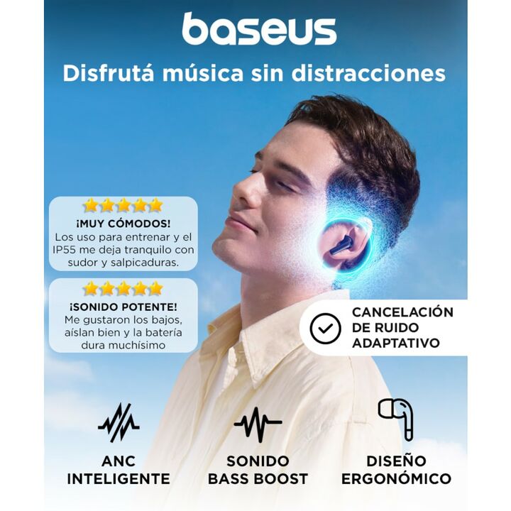 Cancelación activa de ruido para escuchar sin distracciones Los Auriculares Baseus Bass BP1 Pro incorporan cancelación activa de ruido que reduce sonidos del entorno para disfrutar música, podcasts o llamadas con mayor claridad incluso en ambientes ruidosos. Sonido potente con bajos reforzados El si...