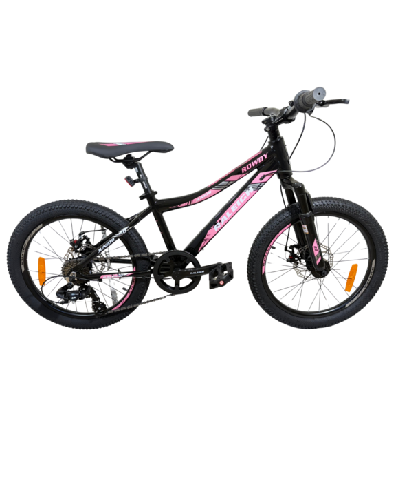 Comprando este producto adquirís una Bicicleta Raleigh Rowdy D / Negro/Rosa / Frenos a disco mecánicos / Cuadro de aluminio / 7Vel. / Rodado 20".