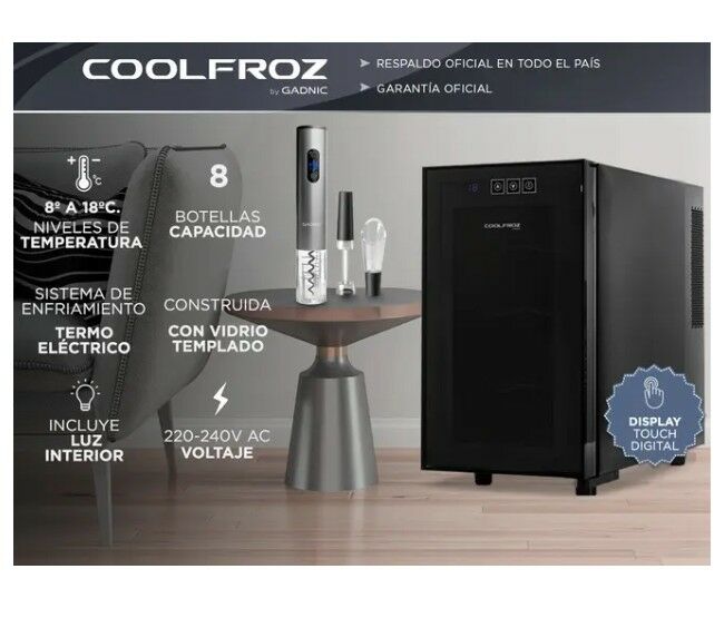 Para disfrutar solo o acompañado, la cava de vinos Coolfroz By Gadnic WCTE0008 estará presente en tus momentos importantes. Estiba botellas en este producto sofisticado, que refrigera y conserva la calidad. Comodidad y estilo La capacidad de almacenamiento de 8 botellas, hace que esta cava sea ideal...