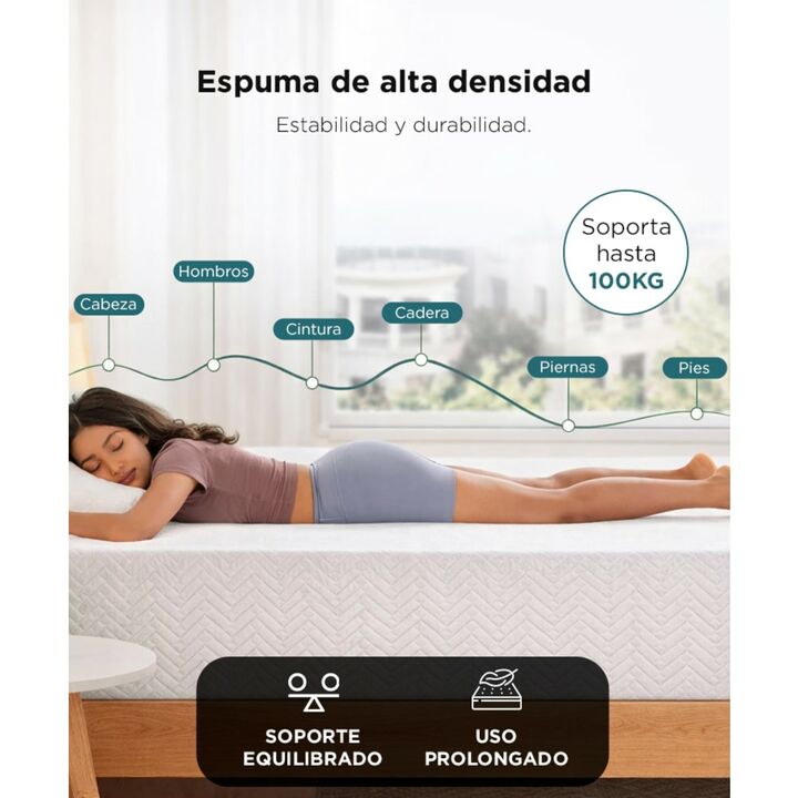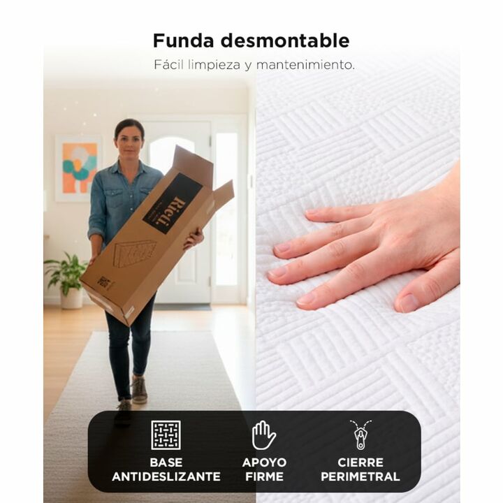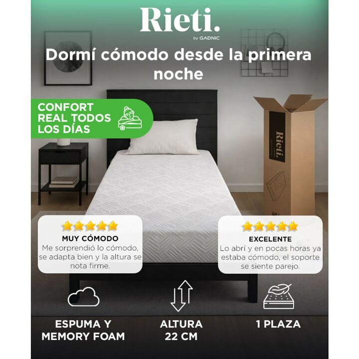 Confort equilibrado para un descanso diario: El colchón en caja Rieti by Gadnic combina espuma de soporte con una capa de memory foam que se adapta al cuerpo, brindando una sensación cómoda y estable desde la primera noche. Sistema multicapa que mejora la postura al dormir: Su estructura interna dis...