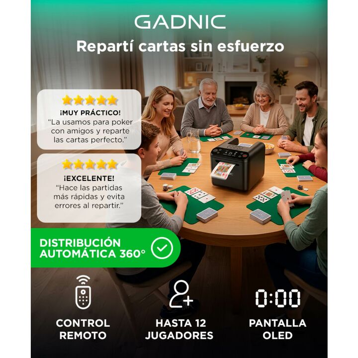 Distribución automática para juegos de cartas más dinámicos La Máquina Distribuidora de Cartas Gadnic CARROB02 permite repartir cartas de forma automática y uniforme, evitando errores y agilizando las partidas. Es ideal para juegos de mesa, poker, blackjack y reuniones con amigos. Sistema giratorio ...