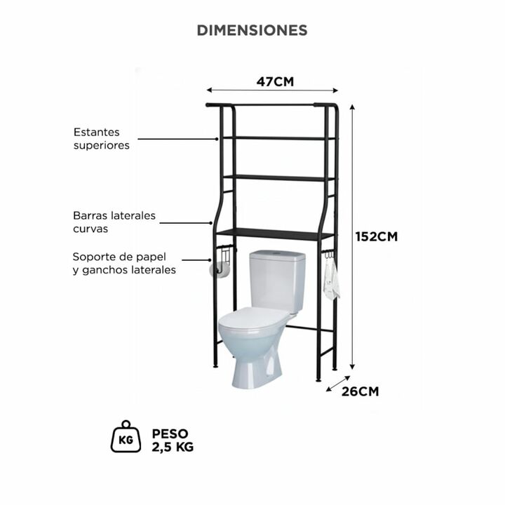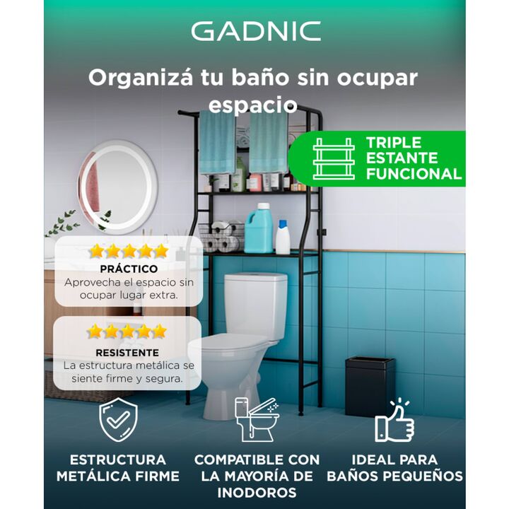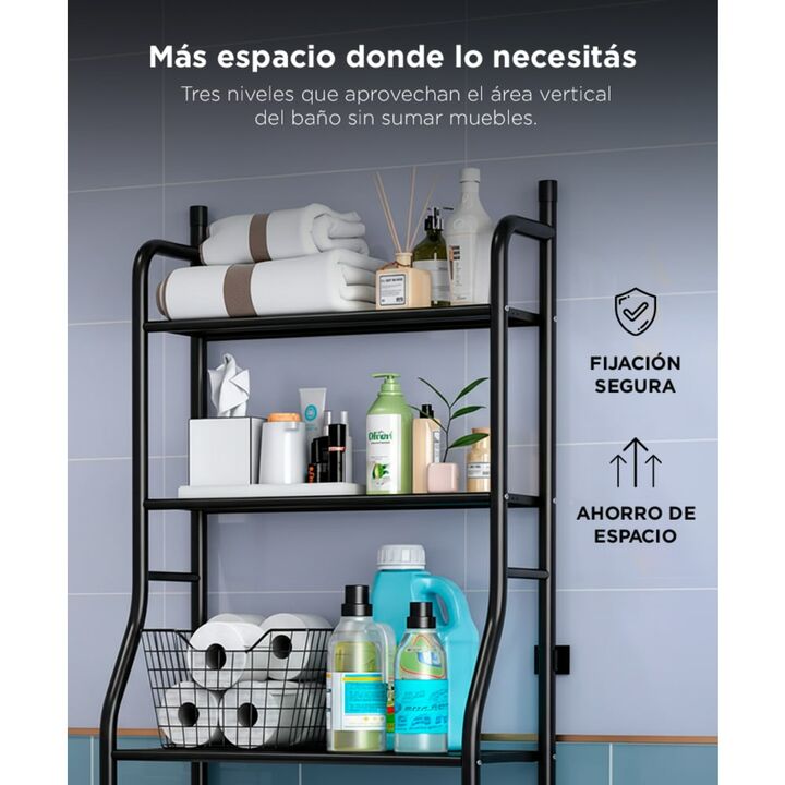 Aprovechamiento inteligente del espacio: Diseñado para colocarse sobre el inodoro, este organizador transforma áreas desaprovechadas en espacios útiles y ordenados. Tres niveles para máxima funcionalidad: Los estantes permiten almacenar toallas, artículos de limpieza, papel higiénico o decoración, s...