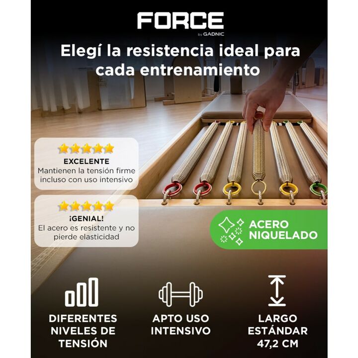 Resortes Pilates Reformer Force by Gadnic Reforzados Acero x6