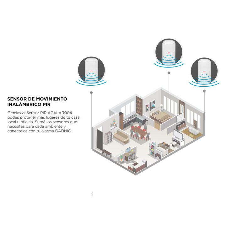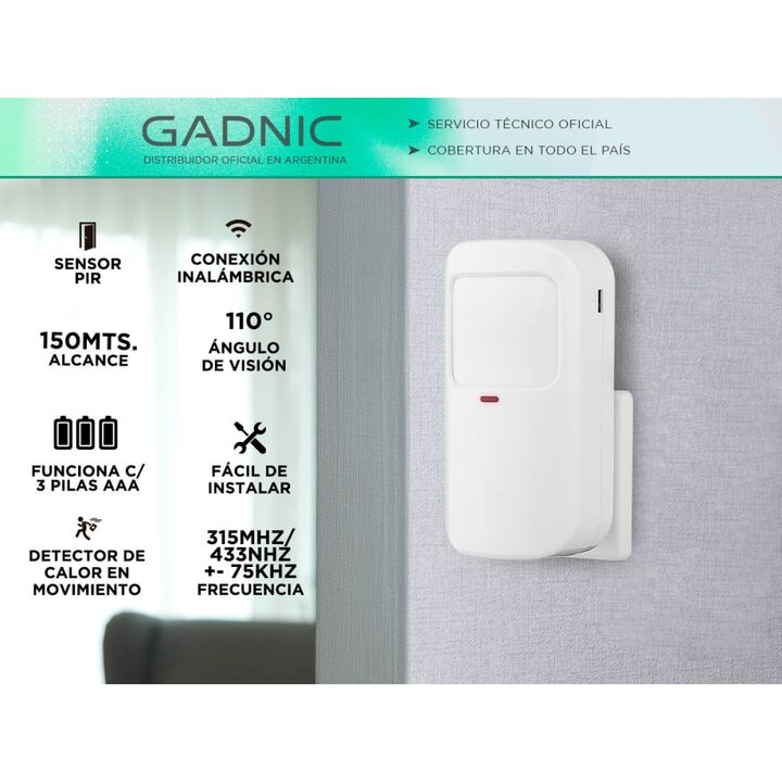 Gracias al Sensor PIR ACALAR004 podés proteger más lugares de tu casa, local u oficina. Sumá los sensores que necesitas para cada ambiente y conéctalos con tu alarma Gadnic. ¡Es muy fácil y rápido, instálalo con su soporte de pared y listo! Especificaciones Sensor PIR Detector de calor en movimiento...